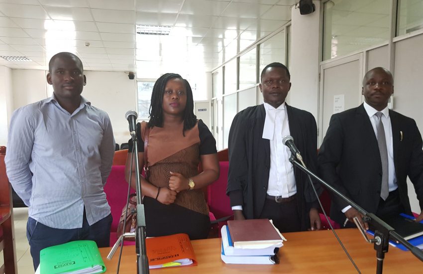 Four Ugandan people in a court room during a legal case to protect ecosensitive areas from oil threats.